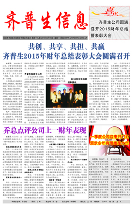 共創(chuàng)、共享、共擔(dān)、共贏 齊普生2015年財年總結(jié)表彰大會圓滿召開